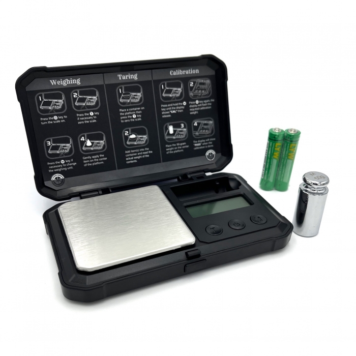• Complete Ready-to-Use Kit: Comes with everything you need: the scale, a 50g calibration weight, and a detailed visual instruction sheet printed inside the lid for quick setup and calibration.